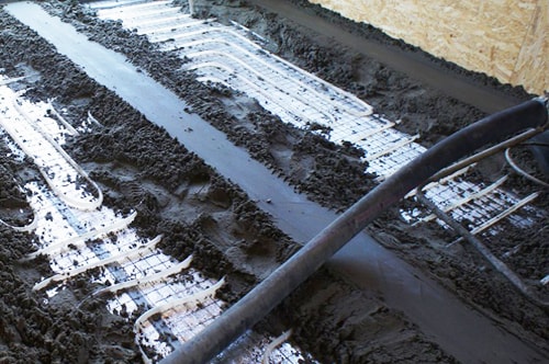 Преимуществом подобного материала является то, что под ним можно прокладывать различные виды коммуникаций, в том числе и системы теплого пола. Добавление полистирола в бетон позволяет снизить шансы появления коррозии на металлических элементах коммуникаций, повысить плотность, эластичность состава и его прочность. К тому же, подобная стяжка влагоустойчива и имеет хорошие показатели по звуко- и теплоизоляции.